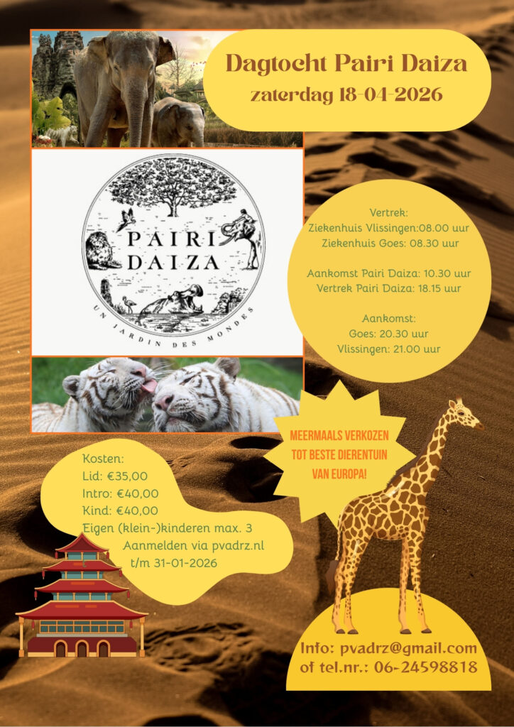 In april 2026 een dagje met (klein)kinderen naar het mooie Pairi Daiza in Belgie. Maximaal 2 volwassenen en alleen (klein)kinderen (maximaal 3) uit eigen gezin. Meld je hier aan.